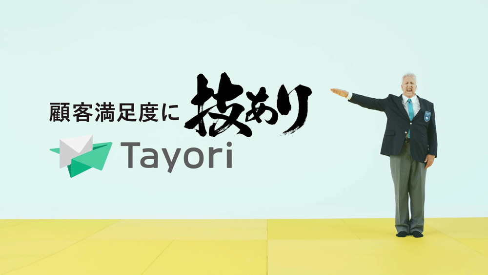 経営者がTayori導入を通じて顧客満足度を高めていく過程を柔道をモチーフにした「顧客満足度に技あり」クリエイティブ