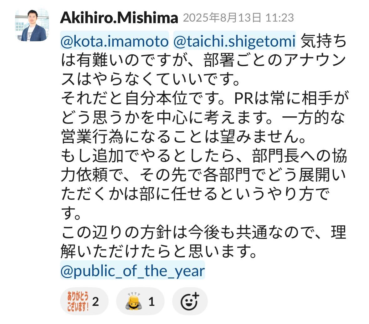 全社に対して、プロジェクトへの協力依頼をアナウンスした際にいただいたフィードバック